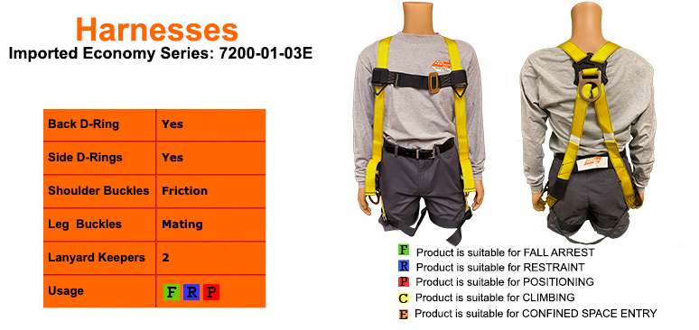 7200-01-03E Import Economy Standard Full Body Harness - Mating Buckle Leg Straps, Back & Side D-Rings