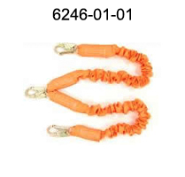 Stretchable lanyards combine the benefits of a covered lanyard with the added convenience of an elastic core. These lanyards stretch from approximately 4-1/2’ to 6’ easily. They are designed so that if they are attached to a back d-ring and one of our chest lanyards keepers, they cannot get hooked under your knee when climbing a ladder or stairs.